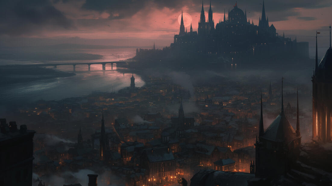 Kingdom of Varelmor: Eastern valleys shrouded in fog, dominated by black spires and marble keeps. Political intrigue, vampires, and secretive noble families define its mist-laden streets.