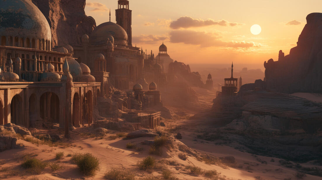 Kingdom of Kuram: Central capital with sandstone walls, oasis gardens, and trade hubs. Home to a succession of Lionkin rulers.