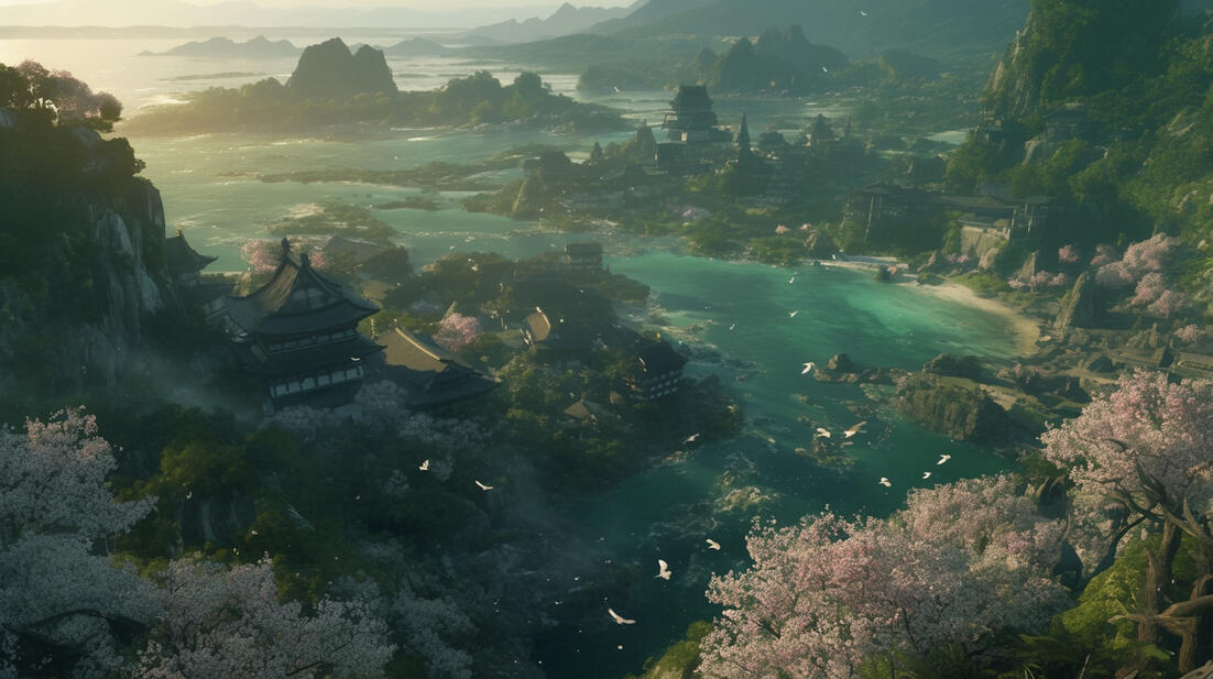 Kingdom of Phia: Southern islands under the rule of a single queen, capital surrounded by ceremonial gardens and shrines.